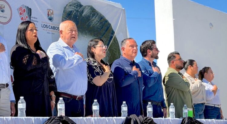 Los Cabos, Baja California Sur.– El XV Ayuntamiento de Los Cabos, en coordinación con el Gobierno de Baja California Sur, conmemoró el LXXII Aniversario Luctuoso del Gral. Francisco J. Múgica en la delegación de Santiago, con un acto cívico que incluyó honores a la bandera.