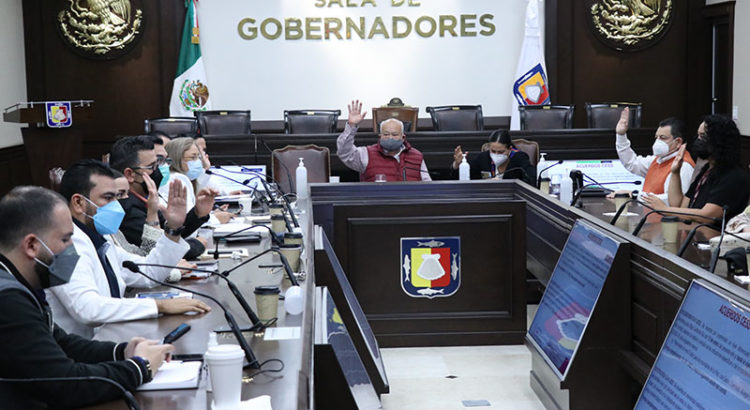 Además, se ratificó el acuerdo de suspensión indefinida de eventos que congreguen más de 50 personas y se enfatizó el llamado para que los ayuntamientos vigilen el cumplimiento de esta disposición. Se acordó revisar los criterios para el uso y aplicación de pruebas rápidas y se reiteró la recomendación al sector educativo estatal para que posponga el inicio de clases presenciales para el 24 de enero de 2022, con el acuerdo de que en la siguiente sesión se revaluará la medida.