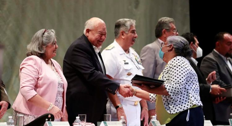 Previamente montó guardia de honor y rindió homenaje en la Rotonda de los Sudcalifornianos Ilustres a los maestros Rosaura Zapata Cano, Jesús Castro Agúndez, Pablo L. Martínez y Domingo Carballo Félix, por su destacada trayectoria y contribución a la educación en México.