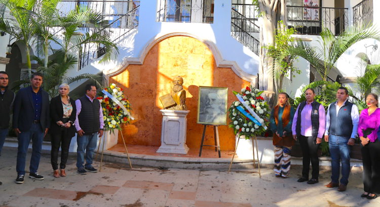 Al concluir la ceremonia cívica, las autoridades municipales se trasladaron al patio cultural Profesor Pablo L. Martinez, -ubicado al interior del Palacio Municipal-, donde colocaron ofrendas florales y montaron una guardia de honor en el busto del personaje ilustre.