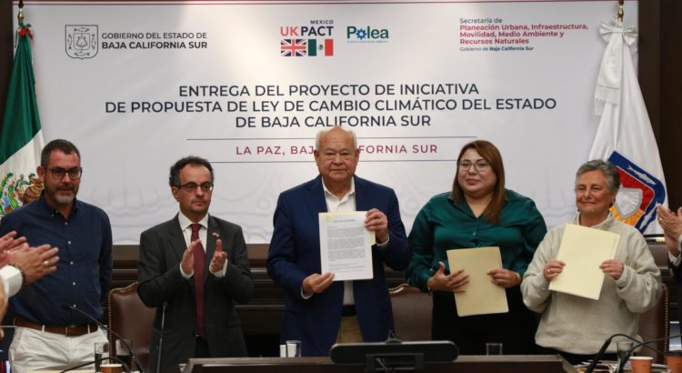 El gobernador Víctor Castro Cosío, recibió el proyecto de iniciativa para la Ley del Cambio Climático en Baja California Sur, la cual buscará sentar las bases para impulsar un desarrollo que garantice el cuidado de la biodiversidad. “Disminuir los efectos del cambio será una responsabilidad de instituciones y de las y los ciudadanos”, precisó el mandatario estatal.
