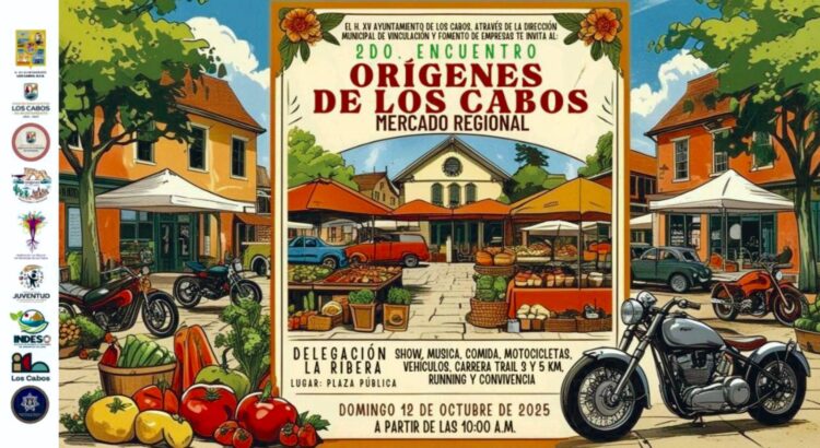 Los Cabos, Baja California Sur.– El XV Ayuntamiento de Los Cabos, a través de la Dirección General de Fomento Económico y Vinculación Empresarial, invita a la ciudadanía a participar en el Segundo Encuentro “Raíces y Rutas, Orígenes de Los Cabos”, que se llevará a cabo el próximo domingo 12 de octubre en la delegación de La Ribera.