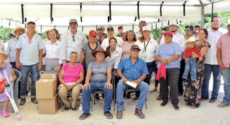 Durante la visita, Castro Cosío otorgó 10 paquetes de vaquillas destinados al reemplazo de ganado, con el propósito de incrementar la producción diaria de leche. En este esquema, el Gobierno del Estado aporta el 70% del valor del hato y los productores el 30%.
