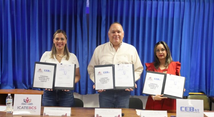 El Instituto de Capacitación para los Trabajadores de Baja California Sur (ICATEBCS) y el Centro de Estudios de Bachillerato 8/2 (CEB 8/2) firmaron un convenio de colaboración con el propósito de impulsar el desarrollo de competencias laborales, la formación técnica y la certificación ocupacional de la comunidad estudiantil.