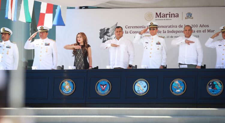 El secretario General de Gobierno, José Saúl González Núñez, acudió en representación del gobernador Víctor Manuel Castro Cosío al acto conmemorativo por los 200 años de la Consolidación de la Independencia en el Mar, realizado junto al comandante de la Cuarta Zona Naval, Vicealmirante José Chapa Téllez, así como autoridades civiles y militares.