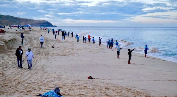 Los Cabos, Baja California Sur.— Con una histórica participación, se llevó a cabo la inauguración de la cuarta edición del torneo “La Orilla de la Baja” en Playa Migriño, en la Delegación de Cabo San Lucas. El evento forma parte del serial Copa Presidente, impulsado por el Ayuntamiento de Los Cabos, que preside Christian Agúndez Gómez, y en esta ocasión participó activamente en la organización y el desarrollo de la competencia, con la asistencia de 713 pescadores.