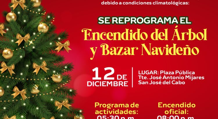 El programa contempla actividades artísticas y culturales desde las 17:30 horas, así como el encendido oficial del árbol a las 20:00 horas. Tanto el encendido en la cabecera municipal como los encendidos en Cabo San Lucas, Miraflores,  Santiago y La Ribera, serán igualmente reprogramados y se realizarán de manera simultánea en la nueva fecha.