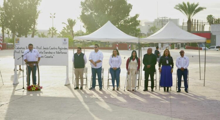 Los Cabos, Baja California Sur.– Como cada lunes, la Coordinación de Educación en Cabo San Lucas realizó la ceremonia de Honores a la Bandera en la plaza pública León Cota Collins, acto cívico que fortalece los valores patrios y la identidad histórica de la delegación. En esta ocasión, con el respaldo de la Coordinación de la Secretaría General, a cargo de Víctor Hugo Castro Martínez, se rindió homenaje a tres destacados cabeños ilustres: Jesús Castro Agúndez, Fernando I. Cota Sández e Ildefonso Green Ceseña, reconociendo su legado, trayectoria y aportación al desarrollo social, educativo y cívico de la región.