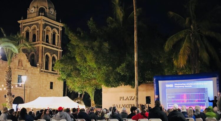 El evento realizado en la explanada de la plaza Salvatierra, reunió a cientos de familias, estudiantes, integrantes de la comunidad científica, organizaciones ambientalistas y público en general, interesados en conocer más sobre la vida del denominado “Gigante de los Mares” a través de la proyección al aire libre de este interesante material audiovisual.