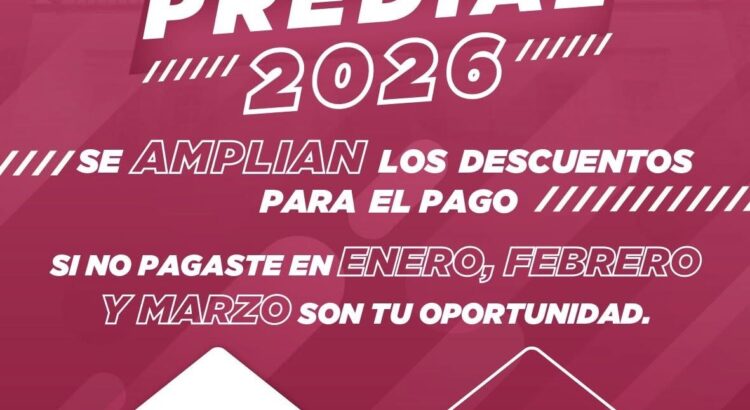 La autoridad municipal informó que el periodo para cumplir con esta obligación se ha extendido durante los meses de enero, febrero y marzo, ofreciendo importantes descuentos para las y los contribuyentes: 50% de descuento en recargos de años anteriores y 10% de descuento en el pago del impuesto predial 2026.