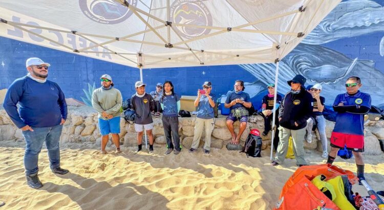 Los Cabos, Baja California Sur.– Personal de la Zona Federal Marítimo Terrestre (Zofemat) Los Cabos participó en un ejercicio práctico del Protocolo de Atención a Ballenas Enmalladas realizado en playa El Corsario, con el objetivo de fortalecer la capacidad de respuesta ante posibles contingencias con fauna marina.