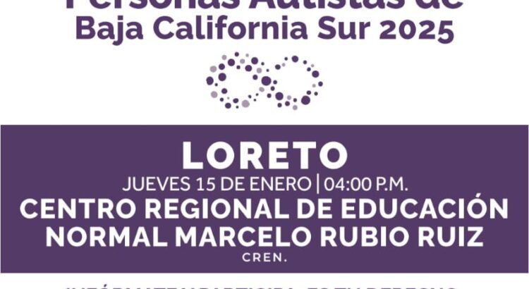 En seguimiento al proceso legislativo de consulta para la Ley de Personas Autistas de BCS, el XI Ayuntamiento de Loreto informa que este jueves 15 de enero, se llevará a cabo la Etapa Consultiva para la conformación de esta nueva ley que busca garantizar el pleno respeto de los derechos de las personas con esta condición.